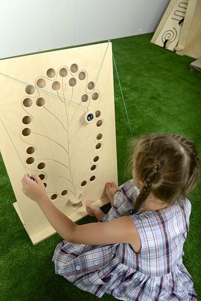 Цель игры - провести шарик, находящийся в кольце, по контуру дубового листа, не попав в отверстия-ловушки.
