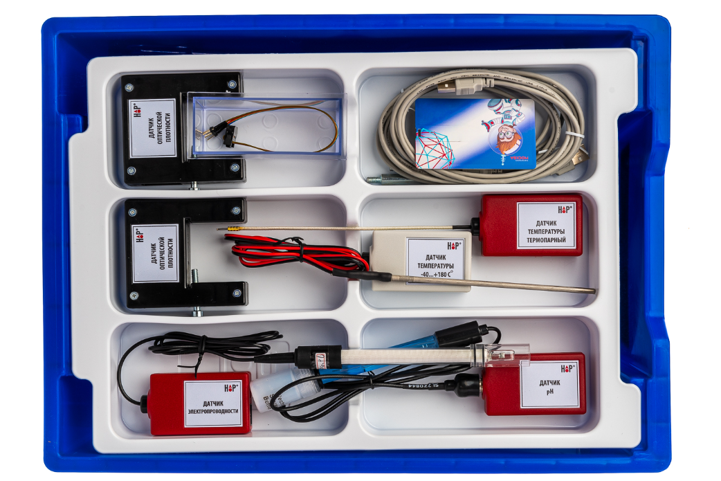 Цифровая лаборатория по химии для ученика – это комплект датчиков, на базе которых поочередно выполняются работы по измерению параметров окружающей среды и набор учебного оборудования, необходимого для выполнения химических опытов.