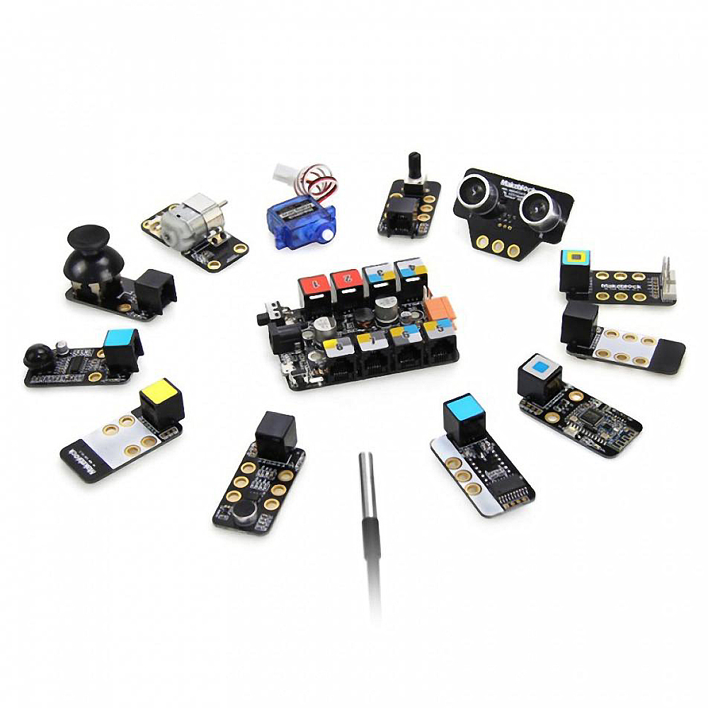 • В комплект входит 12 специальных датчиков и миниатюрных микросхем с цветовым оформлением, что позволит владельцу деталей с легкостью собрать желаемого робота;
