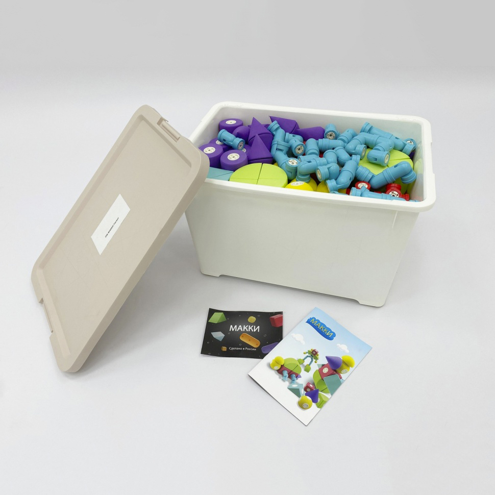 Конструктор «МАККИ Гигант» — набор цветных магнитных деталей (крупных геометрических фигур с магнитными креплениями), рассчитанный на целую группу ДС, так как в комплекте 240 деталей.