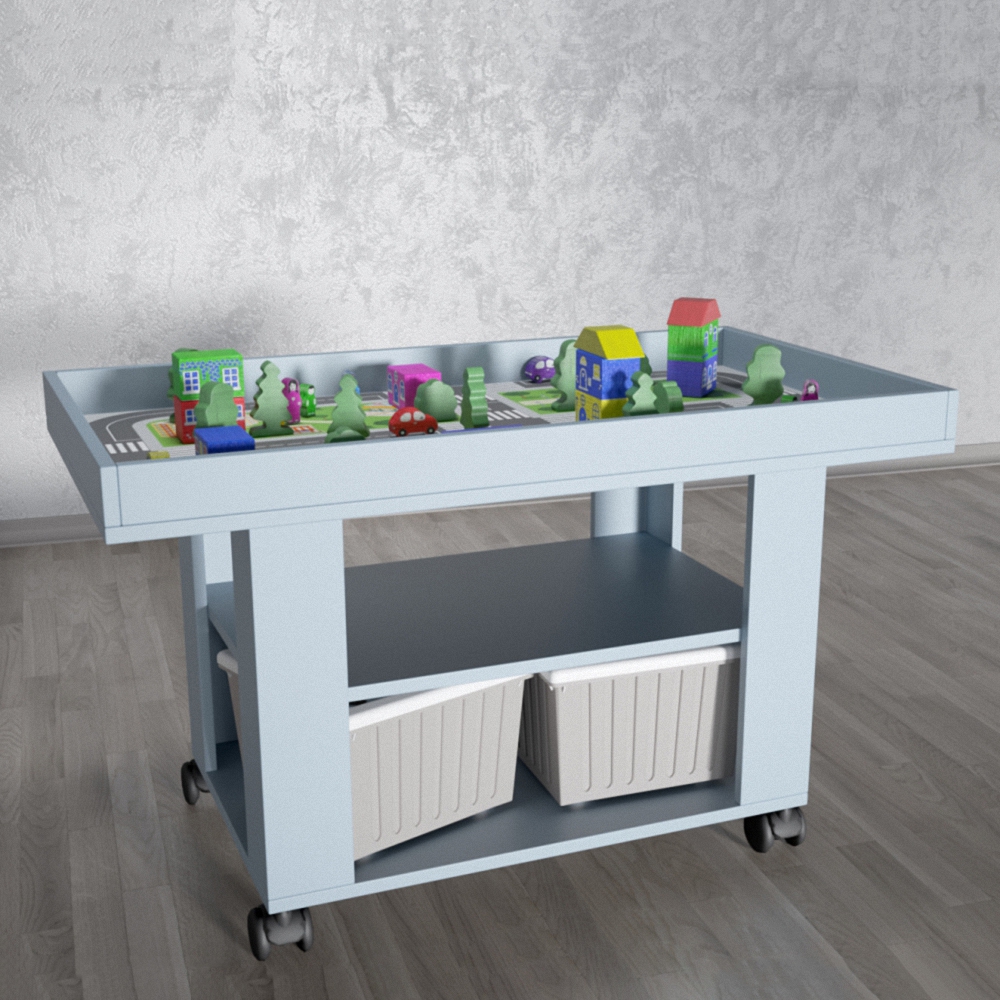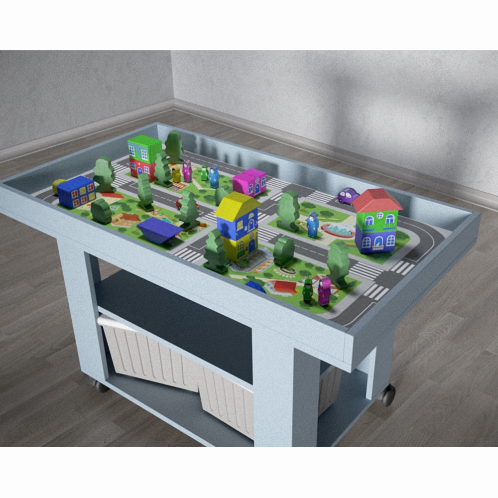 Игровой ландшафтный стол для изучения ПДД №2 просто незаменимая находка для обучения правилам дорожного движения вашего ребенка. Темболее с ним можно не только интересно учиться, но и играть. Стол выполнен из прочных материалов, на ножках стола есть колёсики, которые помогут его перемещать. У него высокие бортики, что послужит защитой от падения игрушек и обучающего материала. Есть две полки, на которых вы сможете хранить принадлежности ребенка. На одной из полок расположено два вместительных ящика, в них будет очень удобно хранить конструктор, игрушки и т.д. А благодаря нежному цвету, этот стол будет прекрасным дополнением детской комнаты. На столешнице стола изображена дорога с пешеходными переходами, разделительной полосой. А также дома, деревья и даже парк с фонтаном. В комплекте есть очень интересный и полезный конструктор с машинками, благодаря которому ваши занятия будут более реалестичными и интересными. Безусловно, ни один ребенок и даже взрослый не останутся равнодушными к э тому интересному и полезному столику. Предназначен для детей от 3-х лет.