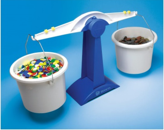 Из деталей набора можно собрать три вида весов: весы "математический баланс" с навешиваемыми разновесами в виде пластин, обычные чашечные весы и весы, в которых вместо чашек используется глубокие емкости (ведерки).