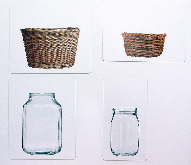 В состав изделия входят магнитные поля с изображением двух кастрюль (большой и маленькой), двух вазочек для фруктов, двух корзинок и двух банок. Эти магнитные поля прекрасно держатся на классных досках. К ним надежно притягиваются карточки с изображением овощей и фруктов (они также представлены в двух размерах). Их всего 48.