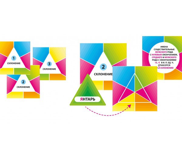 В игре: 42 карточки со словарными словами, три карточки-проверки, два волчка с заданиями, таблица «Падежи и падежные окончания имён существительных»