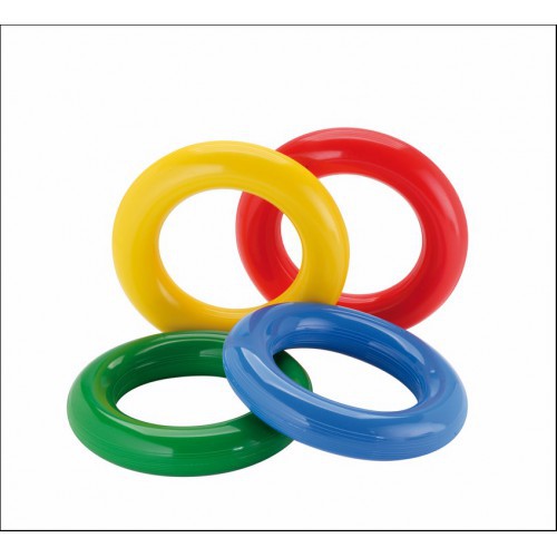 Кольца  выполнены из качественной гладкой резины, не имеют неприятных запахов, резина не содержит фталатов и латекса. Диаметр кольца 18 см, в комплекте четыре кольца разных цветов красный, желтый, синий, зеленый.