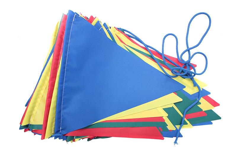 Флажки на ленте фиксированы. Ряд расположенных на ленте или шнуре  треугольных флажков. Это доступный и недорогой способ оформить помещения в преддверии праздников и по случаю проведению спортивных соревнований.