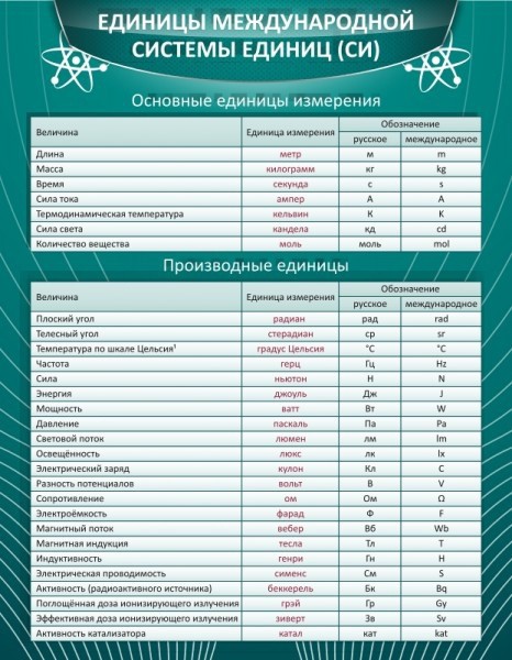 В мировой практике находится настолько много различных систем измерения и разнообразных единиц, которые подразделяются на различные группы, и без их существования не обойтись в школьных предметах, в том числе и в физике. На стенде «Единицы международной системы си» показаны обозначения масс, длин и других популярных единиц измерения, в которых на первоначальном этапе путаются школьники. Расположенный на видном месте стенд помогает учителю сделать значительный рывок в успеваемости класса в целом, ведь даже небольшое понимание одного ученика срабатывает как стимул для другого.