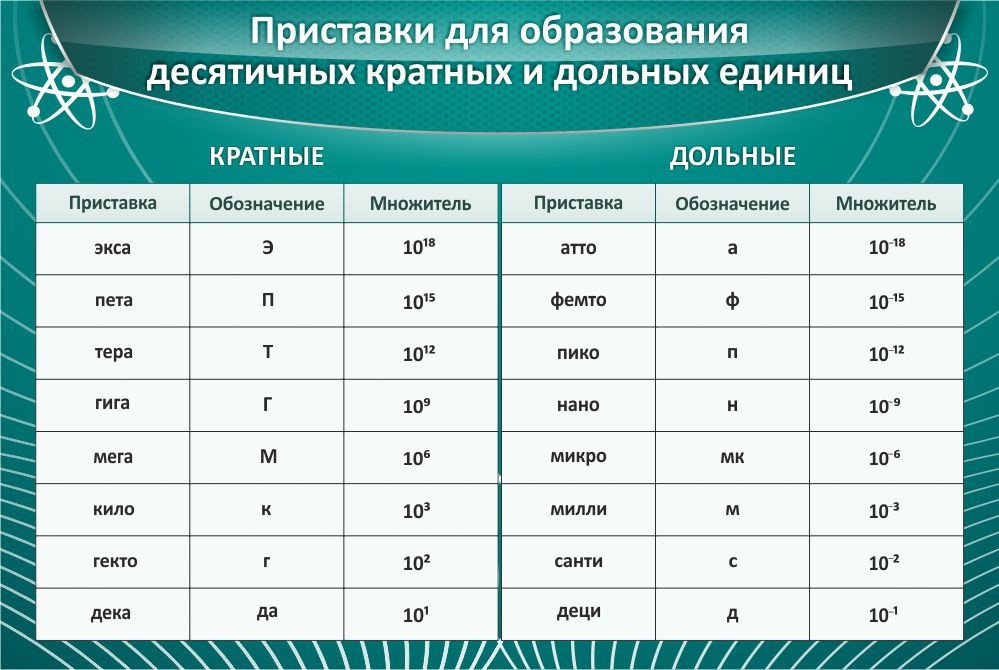 Стенд "Приставки для образования десятичных кратных и дольных единиц"