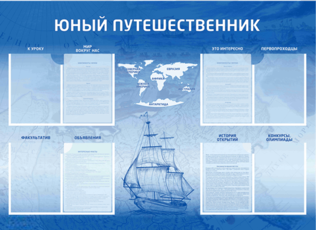 Главная Каталог Стенды Кабинеты География Стенд-уголок "Юный путешественник"