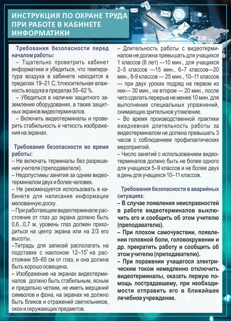 Стенд "Инструкция по охране труда в кабинете информатики"