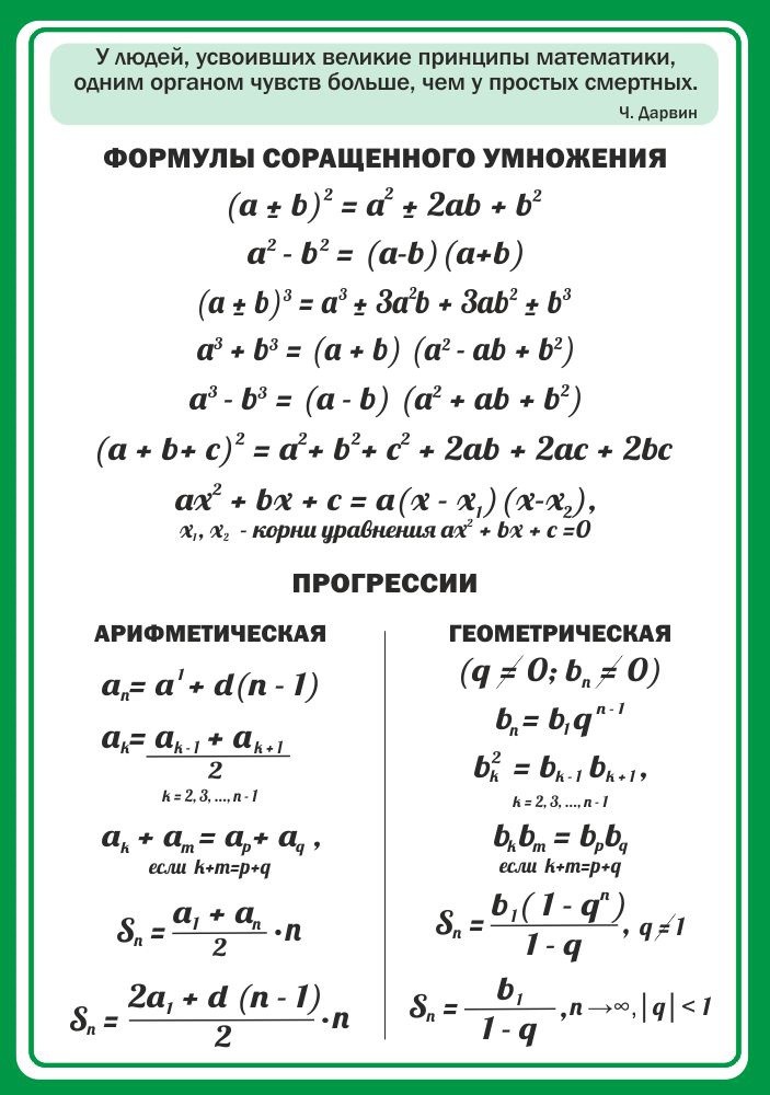 Стенд "Формулы сокращенного умножения" Вариант 1