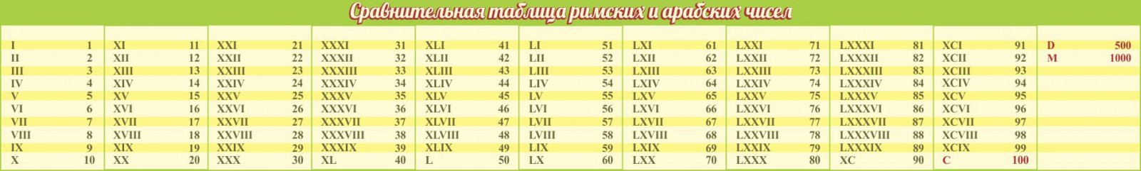 Стенд "Сравнительная таблица римских и арабских чисел"