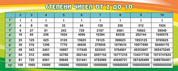 Стенд "Степени чисел от 2 до 10" - fgospostavki.ru - Ейск