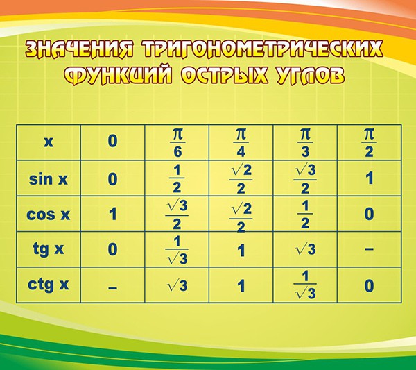 Стенд "Значения тригонометрических функций острых углов" - fgospostavki.ru - Ейск