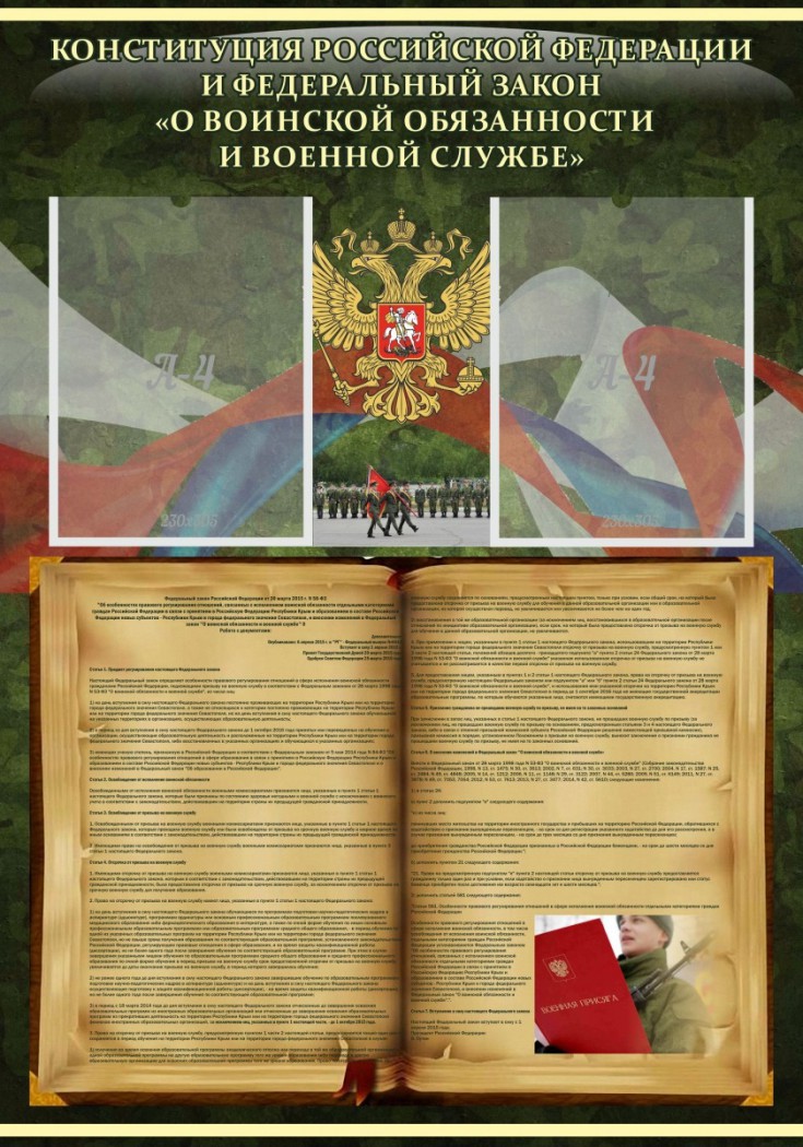 Стенд "Конституция РФ и Федеральный закон "О воинской обязанности и военной службе"
