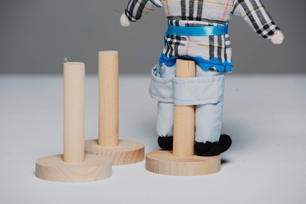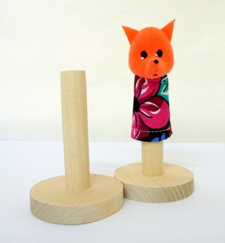 Куклы шагающего театра нужно закрепить за любую из петель на ногах персонажей, а куклы пальчикового театра просто надеть на подставку сверху.
