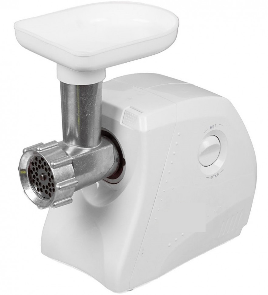 Поможет приготовить мясной и рыбный фарш. Корпус мясорубки и приемного лотка для продуктов изготовлены из прочного пластика белого цвета, на нижней части корпуса расположены прорезиненные ножки для дополнительной устойчивости. Данная модель поставляется без дополнительных насадок.