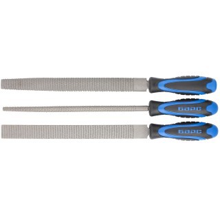 Рашпили, входящие в набор, изготовлены из стали 45, имеют агрессивную насечку , твердость 40…42 HRC. Двухкомпонентная рукоятка обеспечивает комфортный хват при работе. Рашпили предназначены для опиливания изделий из дерева и пластика.