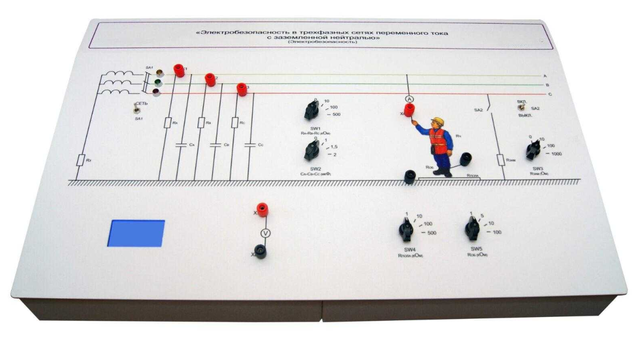 Лабораторный стенд «Электробезопасность в трехфазных сетях переменного тока с заземленной нейтралью» предназначен для проведения лабораторно-практических занятий в учреждениях начального профессионального, среднего профессионального и высшего профессионального образования, для получения базовых и углубленных профессиональных знаний, и навыков в сфере электробезопасности в трехфазных сетях переменного тока с заземленной нейтралью.