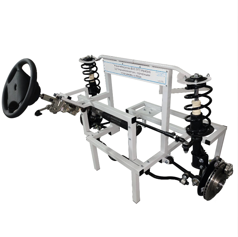 Главная Каталог Учебно-лабораторные комплексы Стенд «Передняя подвеска ВАЗ 2170 (приора) с рулевым механизмом и тормозными механизмами в сборе»