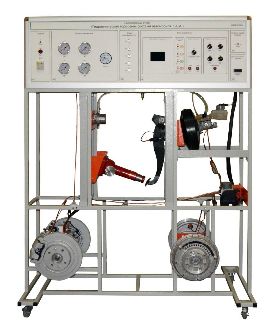 Учебный лабораторный стенд предназначен для изучения конструкции и принципа действия гидравлической тормозной системы автомобиля с АБС, отработке навыков поиска и устранения типовых неисправностей, которые возникают в процессе эксплуатации, техническому обслуживанию и ремонту, получению навыков по диагностике неисправностей АБС.