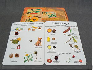 Коллекция состоит из двух планшетов. На одном из них представлены: сухие плоды (односемянные и многосемянные) и сочные плоды (вишня, клюква). На другом планшете представлены рисунки и натуральные объекты, характеризующие приспособленность семян и плодов к распространению: ветром, птицами, животными, перекатыванием по земле и др. Коллекция упакована в картонную коробку и в термоусадочную плёнку.