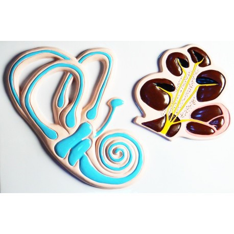 Модель изготовлена из пластмассы путем вакуумного формования. На барельефной модели можно рассмотреть следующие детали строения внутреннего уха человека: