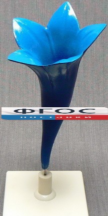 Модель неразборная, представляет собой увеличенный воронковидный цветок василька, цветная, изготовлена из пластмассы и устанавливается на подставку.