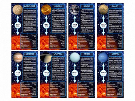 • информационные стенды, представляющие собой панель, на которой отображены основные параметры соответствующей планеты;